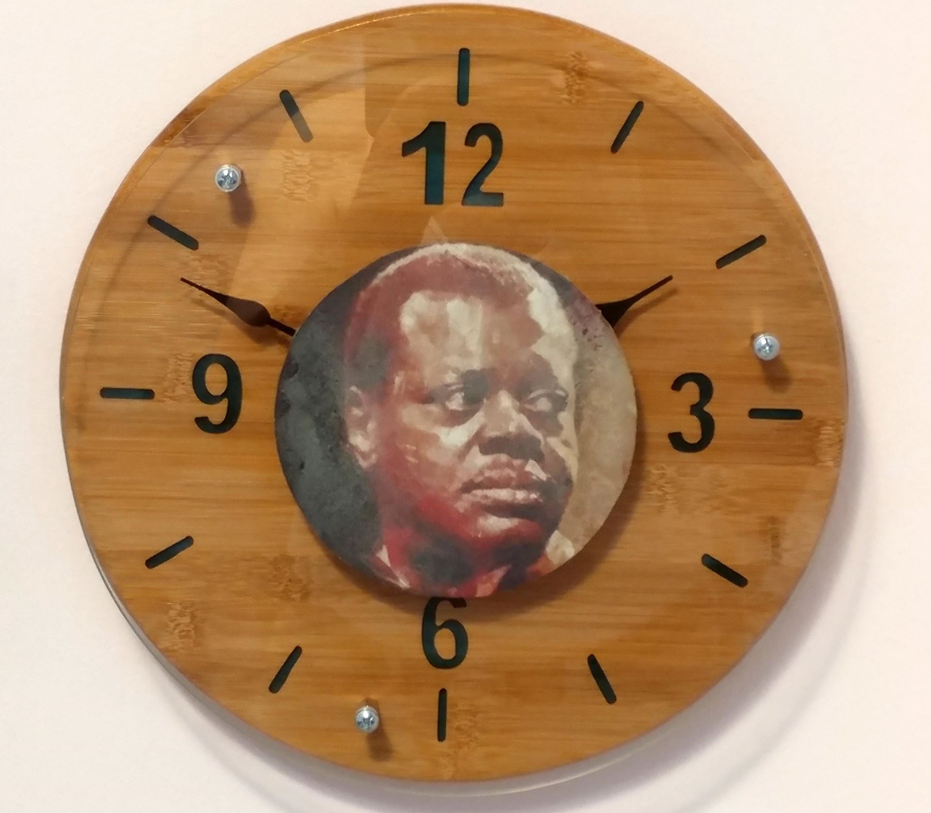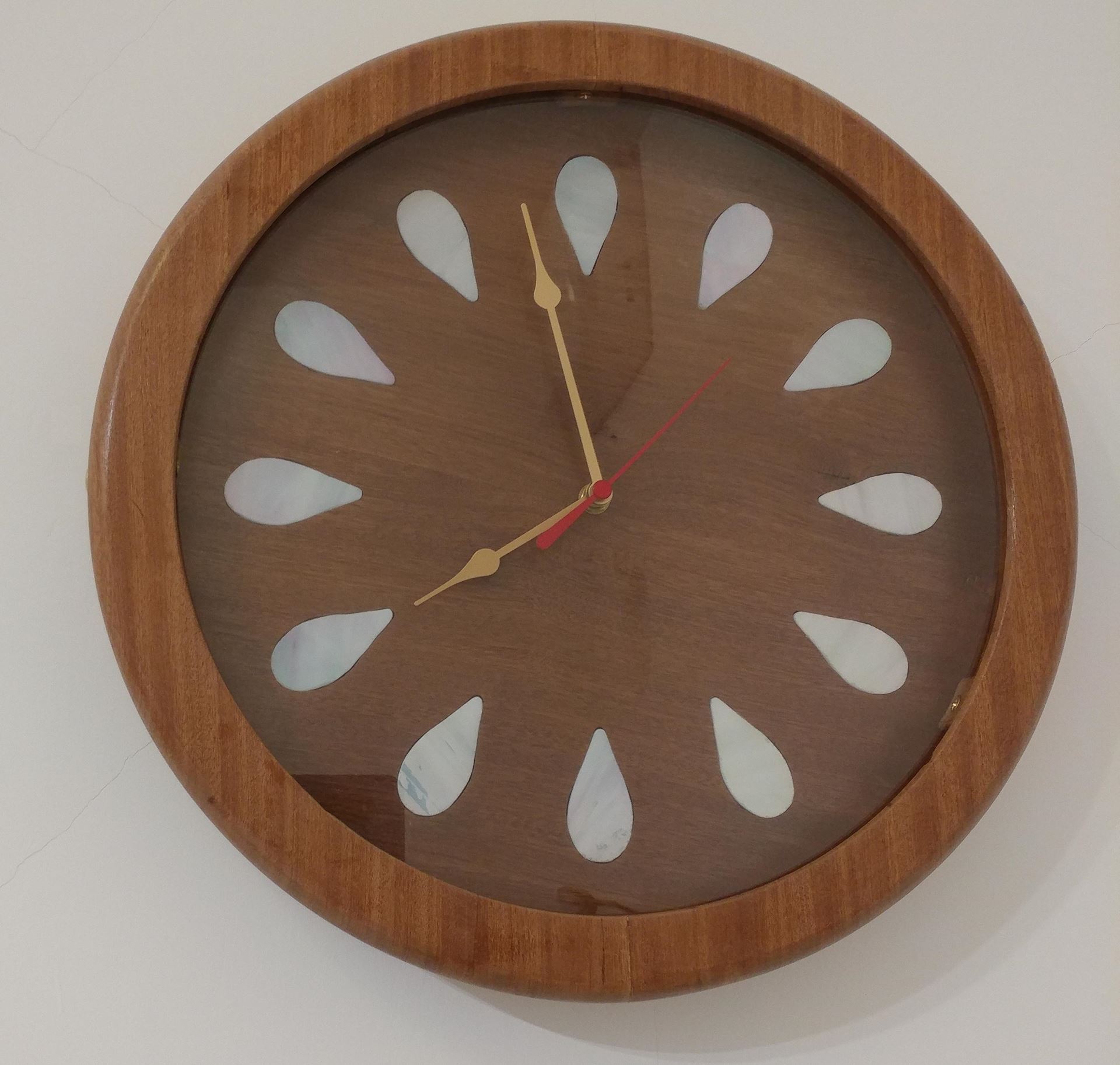 Large wood-glass clock, sapele wood