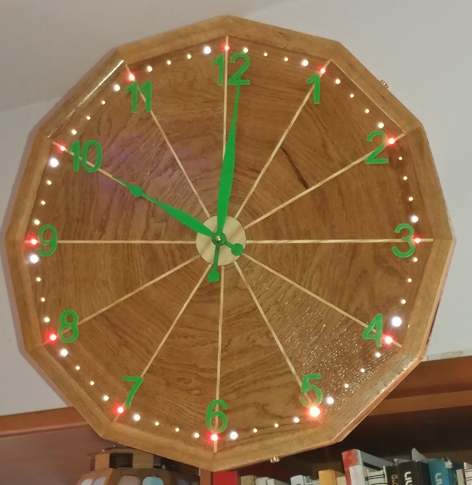 Very large oak kitchen clock, back-lit with timer