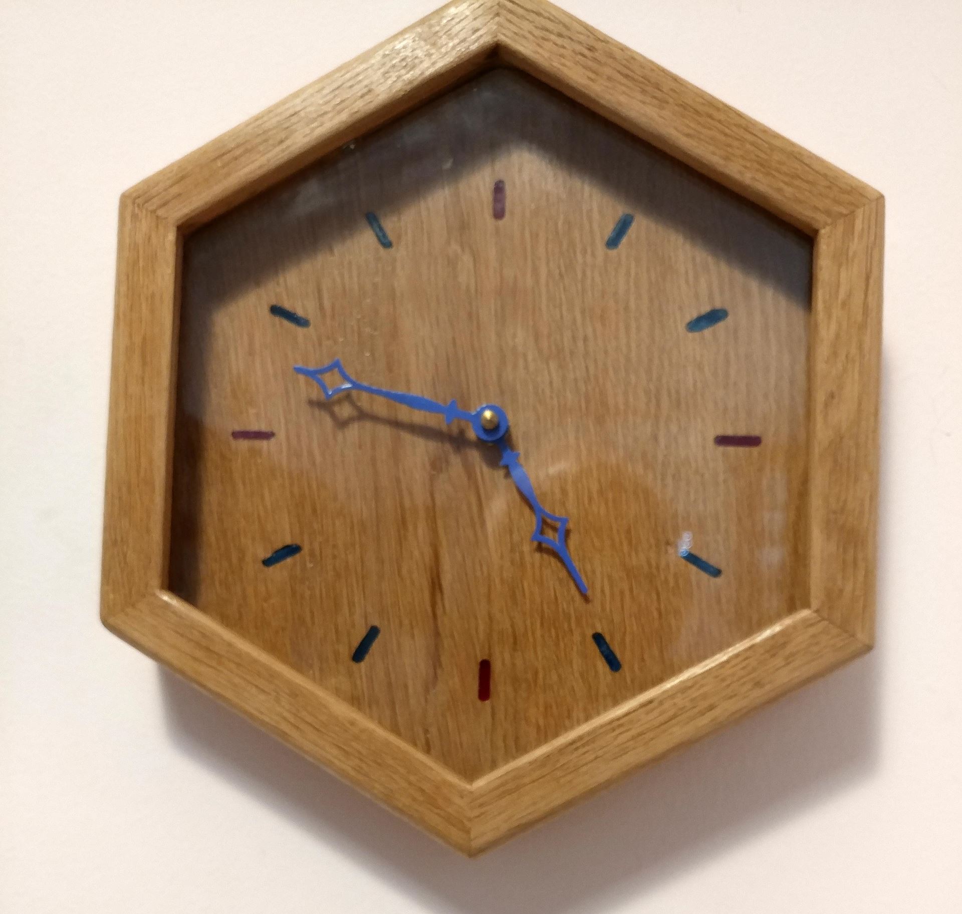 Hexagonal clock - all oak
