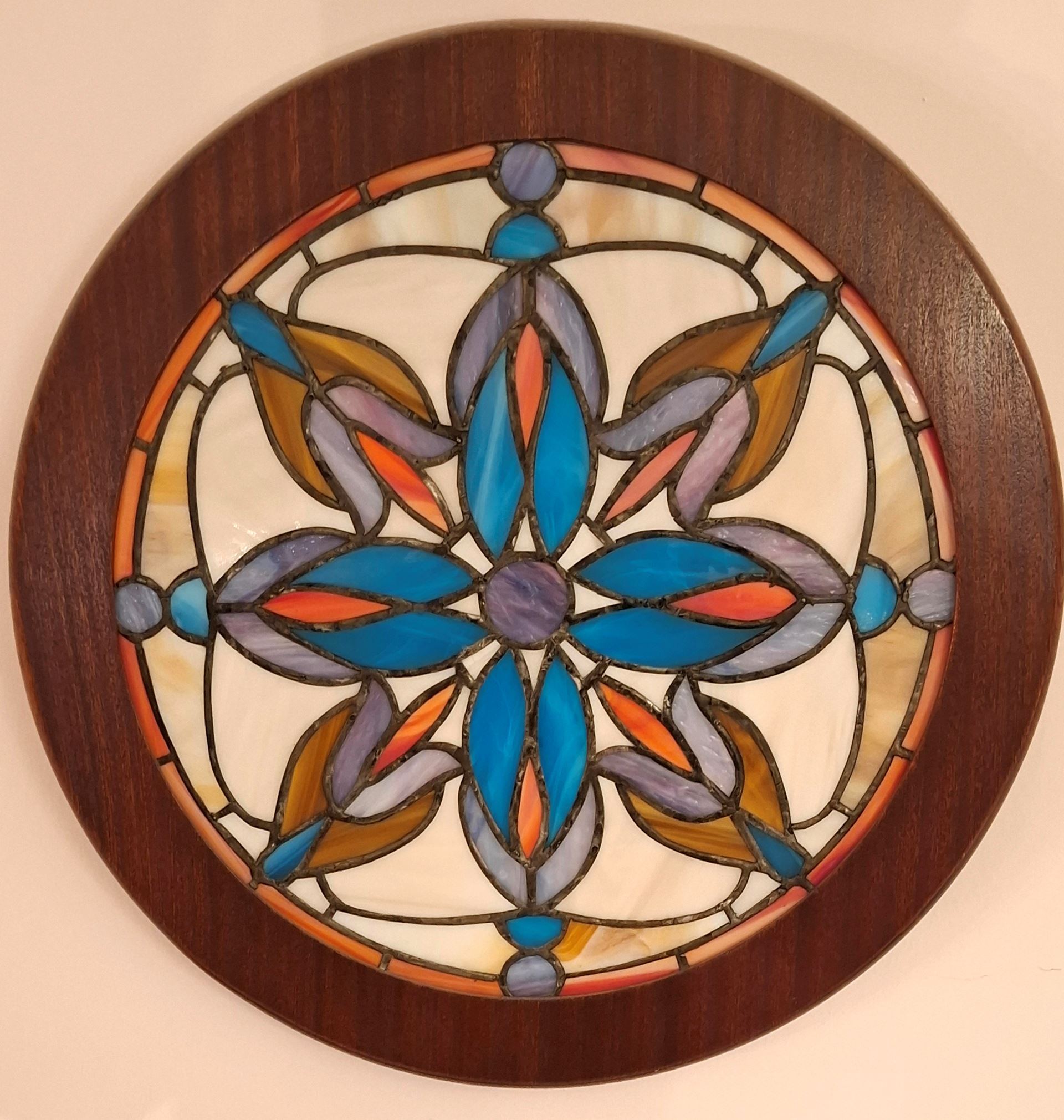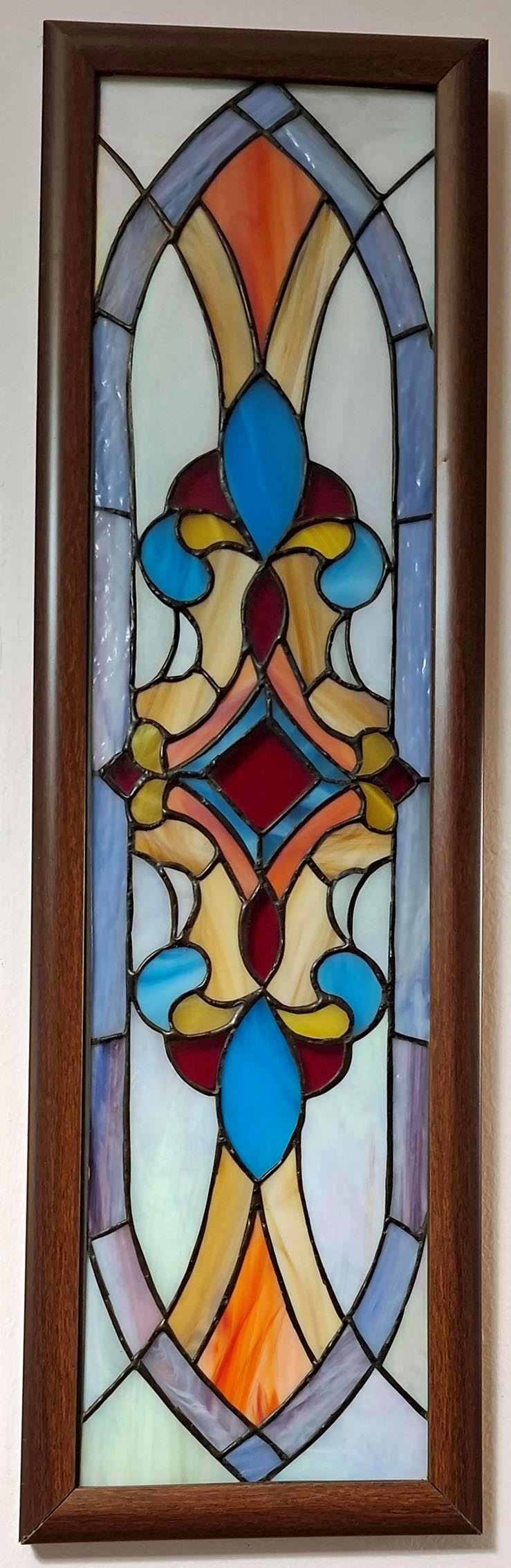 Traditional Stained-Glass in Mahogany. Back-lit